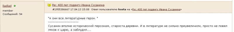 Ответ на сообщение Re: 400 лет подвигу Ивана Сусанина пользователя lladlad
