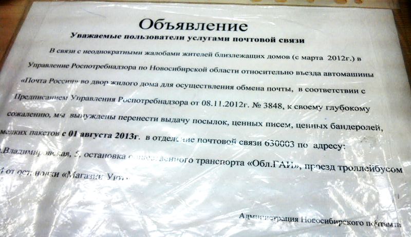 Ответ на сообщение Разгрузка посылок от Почты России, Новосибирск-Главный пользователя 213472