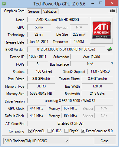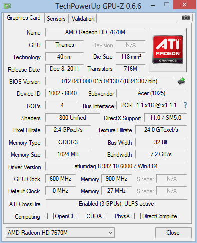 обнаружилась неожиданная вещь - GPU-Z показывает, что у 6620G пропускная способность шины - 128, а у 7670M - 32, но это не главное - некоторые игры (Bejuweled 3 и Zuma Deluxe, в частности, довольно малотребовательные к аппаратной конфигурации аркады) при включенном в БИОС режиме переключаемой графики говорят, что видеокарта не поддерживает 3d акслерацию (непонятно какая, но видимо 7670M) и не тянет на максимальных режимах, хотя на Windows 7 таких проблем не было