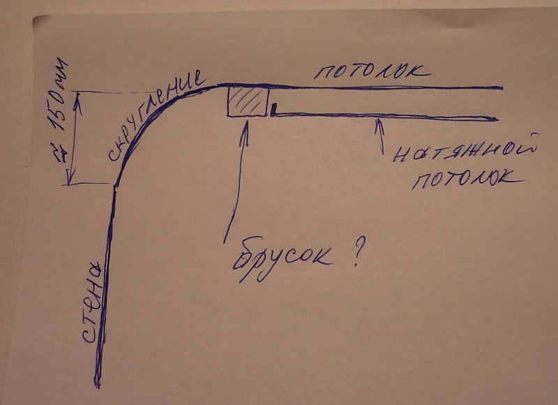 Как сделать натяжной потолок в квартире со скруглениями при переходе стен в потолок, чтобы не потерять сильно в высоте? Возможно по периметру пустить какой-нибудь «брусок» и внутри периметра установить полотно. Можно как-то потом этот брусок закрыть или декорировать?