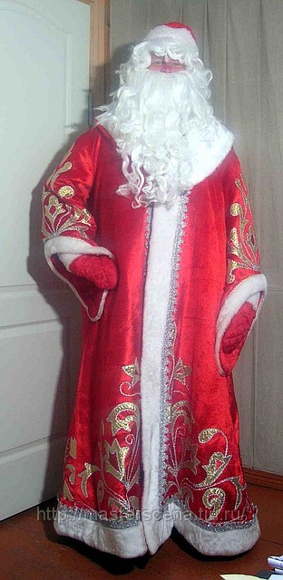 Картонный нос, борода и костюмы расшитые бисером. Есть и в Красном костюме и есть в Голубом. Жаль фотографию найти не могу