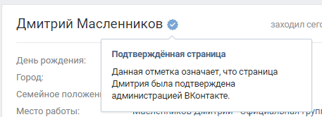 Это не так. Любая значимая личность может получить этот статус, при соблюдении правил введения страницы. Это делается в первую очередь потому, что такие люди имеют проблему с созданием огромного числа поддельных аккаунтов. Но уже нельзя сказать, что "Процедуры валидации пользователя в ВК не существует, признайте это уже".