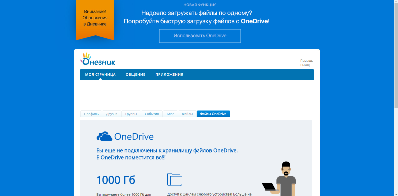 В третьем примере сервис "Microsoft" стараются максимально маскировать под сервис самого сайта, плюс используя агрессивные предупреждения "Внимание! Обновления в Дневнике". Указание на корпорацию "Microsoft" вообще нет, только на название сервиса "One Drive". После нажатия на это "Обновления в Дневнике" успешно происходит переадресация на сервис "Microsoft", где даже не потребовалось никакой регистрации — похоже, что "Дневник.ру" уже успешно передал все данные пользователя своему рекламодателю.