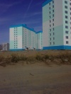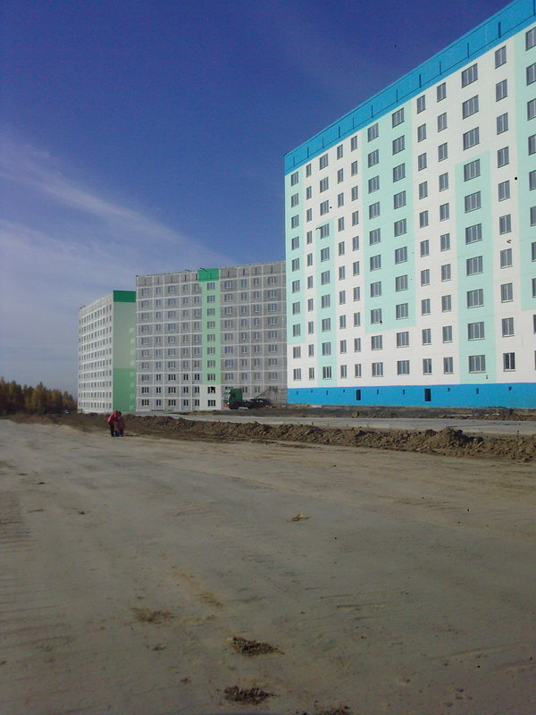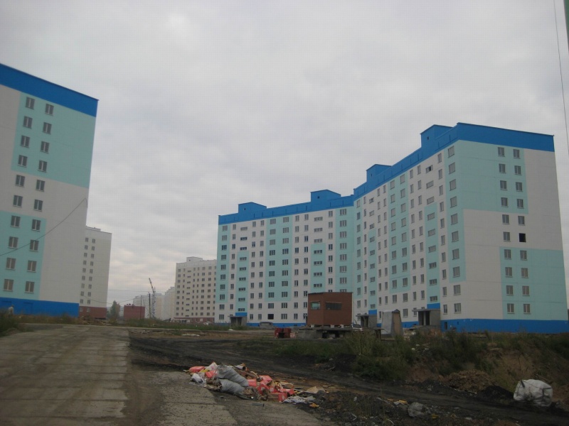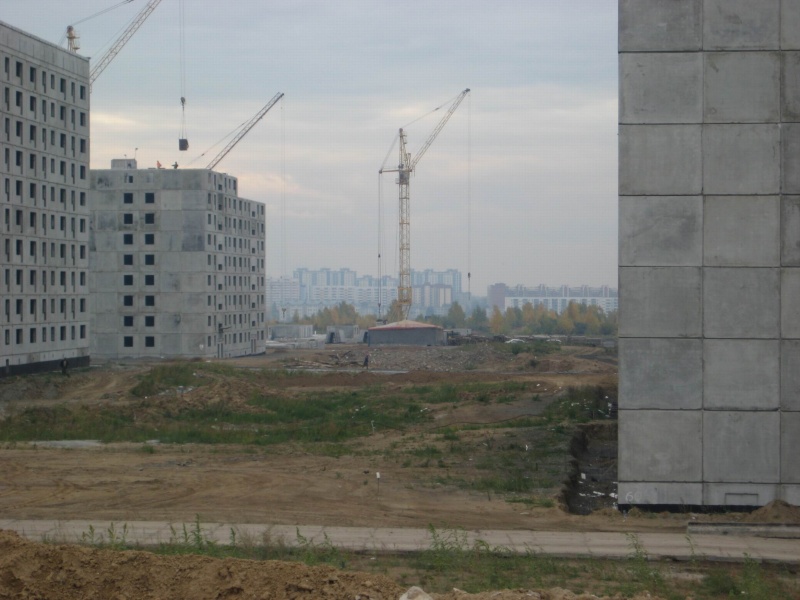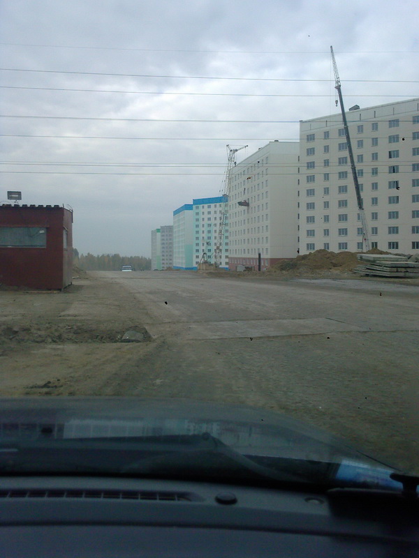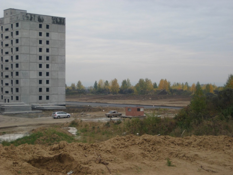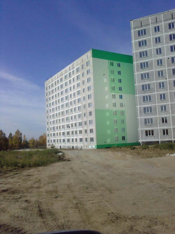Кстати дома так позорно смотряться. Обратите внимание на старые дома- вначале жилмассива - там уже похорошему дома снова красить надо - краска облезает, швы панельные наружу. Как будто и не новые дома вовсе. А что будет через 10 лет? Весь микрорайон облезет - и бетон везде наружу будет? Я вообще сомневаюсь, что потом кто-то красить дома будет вообще. И Как раз когда дорогу до педа построят -Все дома облезут.