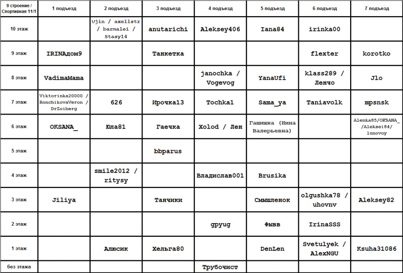 я бы рада иметь две квартиры,да пока ни как.У нас 9 дом,7 подъезд, 6 этажСпр. 11/1,под.7