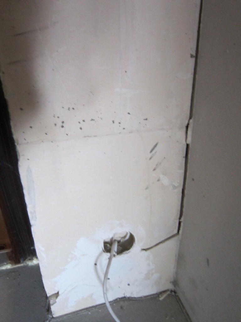 А это стена у входной двери, нижний блок с трещиной, сбоку то же, про геометрию молчу.