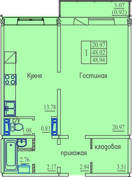 Ю/Ч №39/3 , 1-комнатная