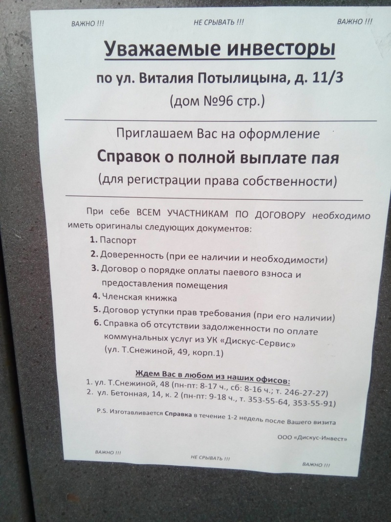 Я примерно раз в неделю-две звонила, в 5 части кто-то отписывался с фотографиями, я тоже думаю, что не зря, и может разговор с Малевым немного продвинул эту ситуацию, может конечно так совпало, но через неделю после разговора с ним, все сдвинулось, и Слепнев через пару дней после этого ответил, хотя меня он вообще игнорил.дискус хоть отдохнет от меня, я их уже достала, сколько я им звонила и писала, даже вспоминать не хочетсяДумаю это было не зря, и думаю быстрее отдают ключи тем домам,кто больше их достает