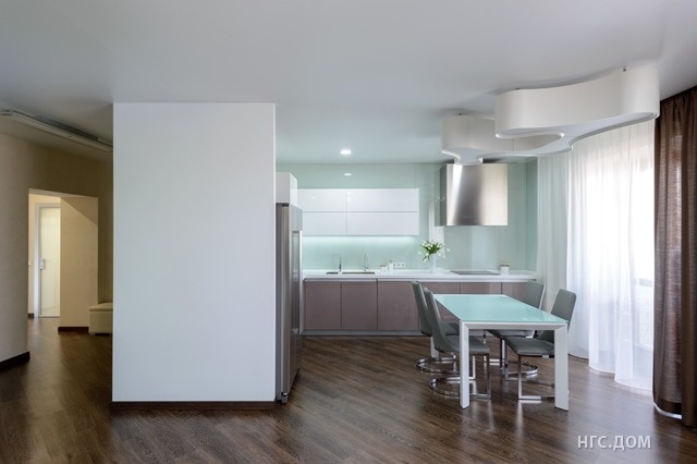 Я тоже пытаюсь придумать какие то перегородки,чтобы кухня явно не смотрела в зал своими холодильником и печкой. Просто выстроить кухню вдоль стены меня совсем не устраивает ! Я ее то к окну разворачиваю,то ко входу.