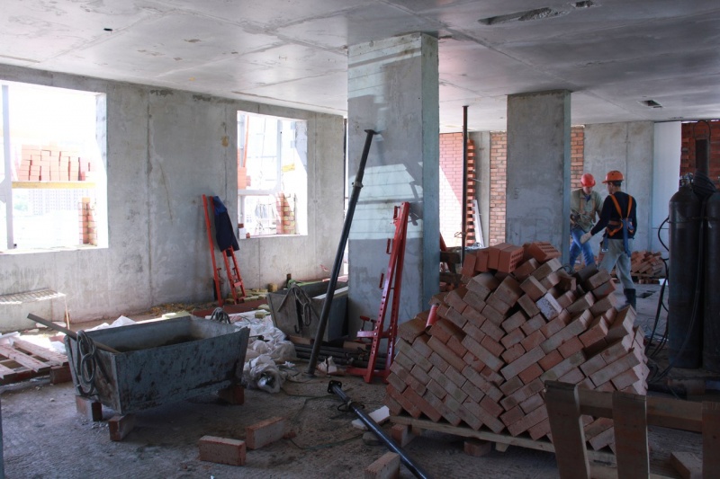 Вроде самый строительный сезонна,а темпы по 1 дому оставляют желать лучшего.Кирпич хоть немного кладут, а монолит вообще уже почти не двигается с мая.Существует некоторая технология строительства в каркасных сооружений. Нельзя сначала все этажи отлить, а потом заполнять кирпичом. Конструкция может накрениться. Поэтому отливают столько этажей сколько по конструкторским расчетам позволяет конструкция, потом заполняют кирпичом,так чтобы нагрузка равномерно распределялась на сваи и начинают заливать этажи дальше... Но так как кирпича уже много выложили, а не льют, возможно бетона на все стройки не хватает