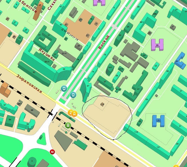 Места там довольно много. для одного дома.Места там как раз достаточно, чтобы поставить симметричный относительно ул.Восход дом, аналогичный Зыряновской, 55 (без части, которая уже построена справа, конечно - Зыряновская, 57). Вместе с уже упомянутыми зданиями он образует очень красивый ансамбль при просмотре со стороны левого берега - как ворота после моста...