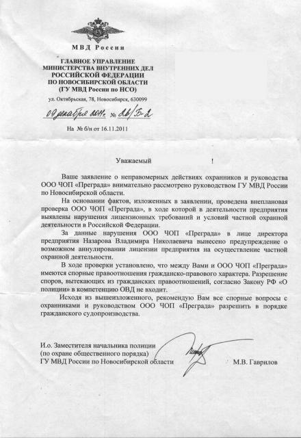 Сейчас позвонил в ЧОП "Преграда", чтобы поставить их в известность о подаче заявления и обсуждении на городском форуме. Видимо, они были в курсе - секретарь сказала, чтобы я не называл их Генерального Директора словом "этот".