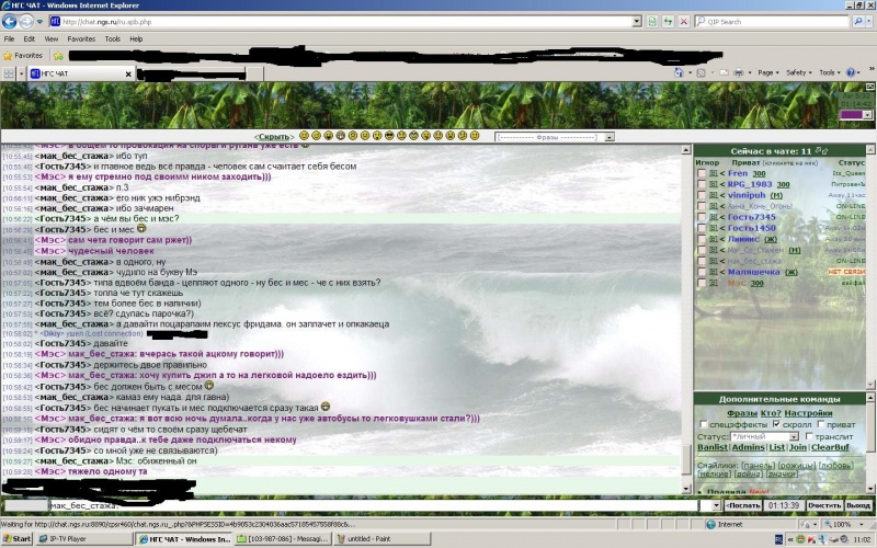 модер Мэс начала меня задевать в чате и пытаться оскорбить не с того не с сего. отвечал ей по возможности, не оскорбляя Мэс. потом вышел из чата. и зайти уже не могу - модер Мэс забанил меня не не объясняя причины и не предупреждая. также непонятно на какое время.