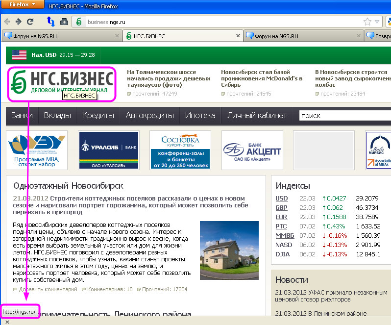 Добрый день! уважаемая администрация у меня, как у пользователя бизнес форума есть небольшое но приятное предложение, касающиеся удобства управления на странице. В разделе бизнес журнала (http://business.ngs.ru/) нет прямой ссылки на возврат в главное меню форума (http://forum.ngs.ru/). посмотрел в других разделах-там такая ссылка присутствует (вверху слева), неплохо было бы и на бизнес портале сделать подобную, или возврат на главную НГСа (ngs.ru). Думаю, что другие пользователи меня поддержат.