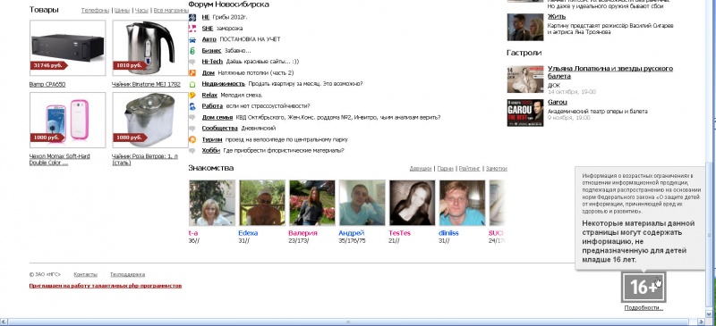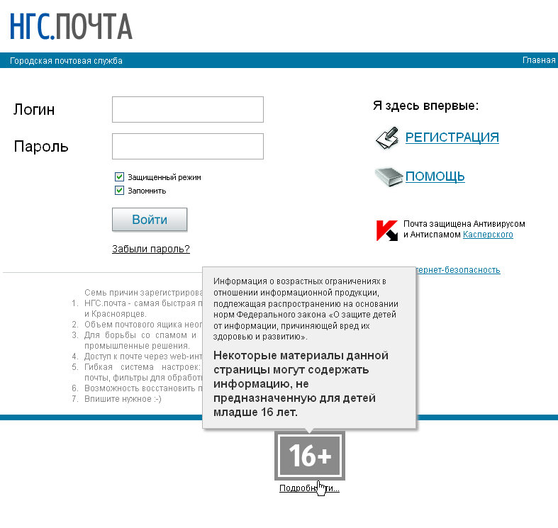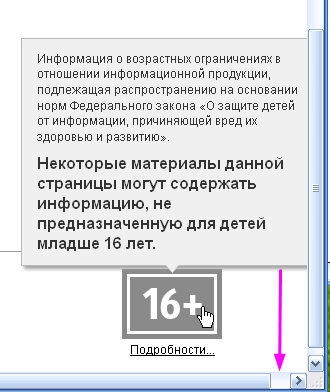 А 16+ стоит для всего форума, насколько я понимаю.Не только для форума. Даже на странице входа в почту может быть информация "16+"