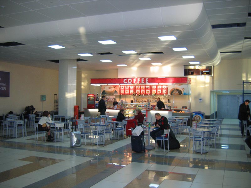 Внутри блока местных авиалиний в зале вылета убрали перегородку, которая отделяла старое здание от нового. В итоге в секторе вылета появилась весьма интересная зона (см. фото). там сейчас кафешка пока. Справа сверху через стекло виден зал ожидания пассажиров, не прошедших регистрацию. Слева - служебные помещения. Правда, убрав эту перегородку, убрали и детский уголок, который был рядом с ней. Но детская комната есть в зале повышенной комфортности.