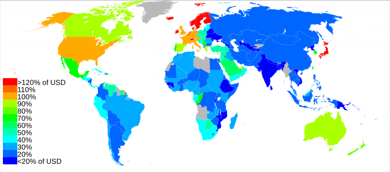 если эту "покупательную способность" учитывать .... то при стоимости билета 95 евро в германии тут он должен быть менее 47,5 евроВсе верно - примерно так и учитывается. ППС считают как стоимость определенного набора товаров и услуг в национальной валюте и в конкретной стране. При этом набор для определения ППС сейчас процентов на 70-80 состоит из услуг. Поскольку в первую очередь ППС применяют для сопоставления ВВП, который у развитых стран процентов на 70-80 состоит из услуг. А услуги (транспорт, медицина, сервисы и. т.д) в Европе дороже.