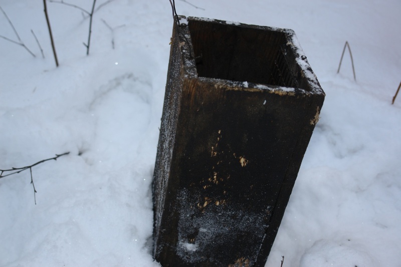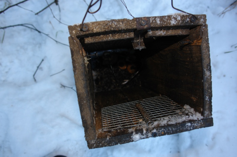 Позавчера, так же выехали покормить зверьков и зайдя в знакомый лесок, случайно увидели много семечек и их кожурок на снегу, не под кормушкой, как обычно, а под другим деревом. Подошли посмотреть и услышали, что кто-то стучится и шкрябается, обошел дерево поднимаю голову, а там типа скворечника, но без отверстий, в общем, залез на дерево и снял, оказалась - ловушка на белок! В ней пойманный бельчонок, какой то апатичный уже! Отнесли его подальше в другой лесок и открыли ловушку - он как ошпаренный вылетел, ругаясь и убежал.