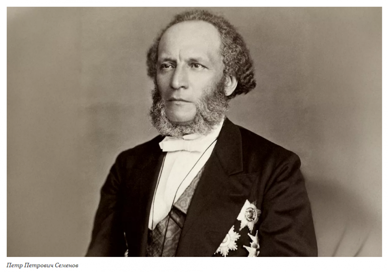 По старинной традиции, все путешественники были немного шпионами, и Географическое общество исполняло также функции разведывательного ведомства. Семёнов «завербовал» Валиханова, который, по его рекомендации, отправился в Кашгарию (на северо-западе Китая) под именем купца Алимбая и доставил российскому правительству важные сведения об этой территории, куда не было входа европейцам. Вместе с образцами местной флоры и чертежами китайских приграничных крепостей Валиханов привёз голову своего менее удачливого коллеги, немецкого путешественника Адольфа Шлагинтвайнта, казнённого по приказу правителя Кашгарии Вали Хана.