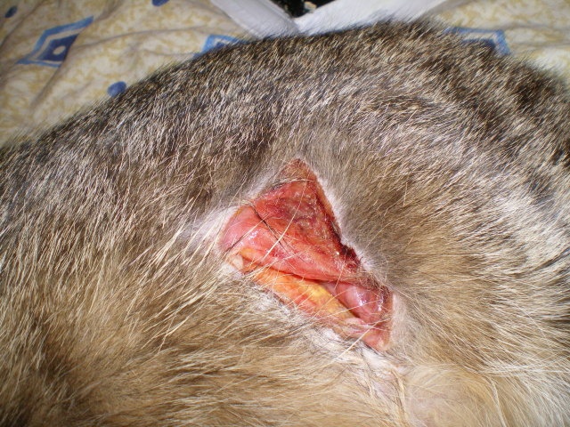 Василек прорвал себе часть бочины, огромная оголяющая плоть рана, могла стоить ему жизни. Опасность в виде занесенной в рану инфекции, личинок мух - все это обрекало его на мучительную смерть.