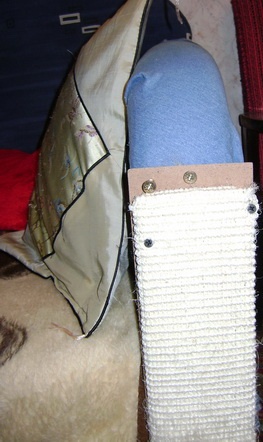 А я не стала бороться с котом по поводу дивана, там где продрал, конечно, пришлось обтянуть заново, мебельный степлер и кусок ткани, заняло минут 10... и на месте наиболее любимого для раздирания прикрепила "дралку" на саморезах