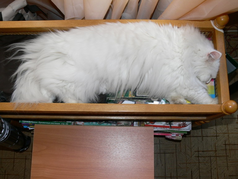 Маш, просто он смотрится больше, наверное из-за шерстки. 4 кг - это прям по-божески, я маминого Барса еле поднимаю, откормили мужчинку, 7 кг уже...Ответ на сообщение Re: а как спит ваш питомец? пользователя Leya