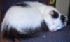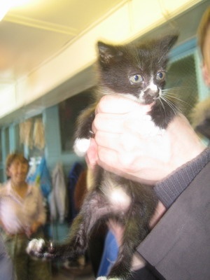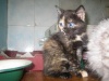 Всю дорогу (а моталась она с нами в машине долго, часов пять) с рук не слезала. Такая кроха, а мурчит как трактор. И играется, и гладится! И вообще... такое чудо. Мне ее ТАК отдавать не хотелось . И я ей, видно, понравилась :o. Она меня весь вечер обаять старалась: в глаза заглядывала, мордочку на руку клала, гладилась, голову на плечо положила . Эхх... А под конец пути, видимо, разозлившись на то, что все таки отдают кому-то, ТАК в машине, пардон, напукала, что пришлось окна открывать . Откуда чего в такой крохе?