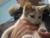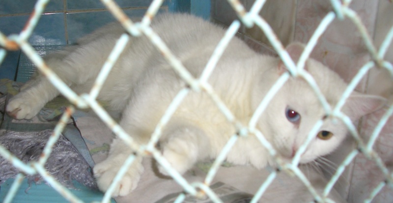 Вот такая забавная девчушка. Абсолютно белоснежная с разными глазками. Один синий, второй желтый. У ребенка еще стресс, поэтому с карантина пока не выпускают.