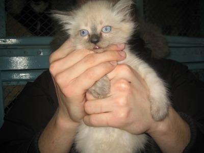 А это вообще - красота неописуемая. Алтайские голубоглазки не так, случайно, выглядят? Абсолютный "вискас" с голубыми (заметьте, уже поменявшимися!) глазами. Тоже котик. Братик предыдущего. Около 2 месяцев.