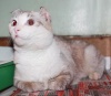 Интересная у него конституция: головастый, почти, как британец, а тело небольшое. "Пойнтовое" пятно на голове, на самом деле светлее, чем получилось при вспышке. И сам он очень светлый - почти слоновая кость, спинка серо-бежевая, тоже светлая. Хвост тёмный и "бывшие" кокушки- чёрные. Наверное, раньше он этой деталью своего гардероба очень гордился