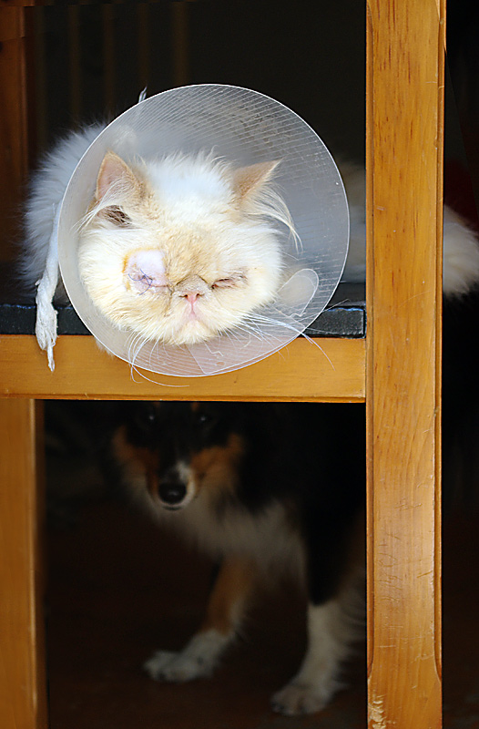 Тут Каспер и Кнопи... дабы вы смолги сравнить размеры обычного кота и замореной голодом кошечки...
