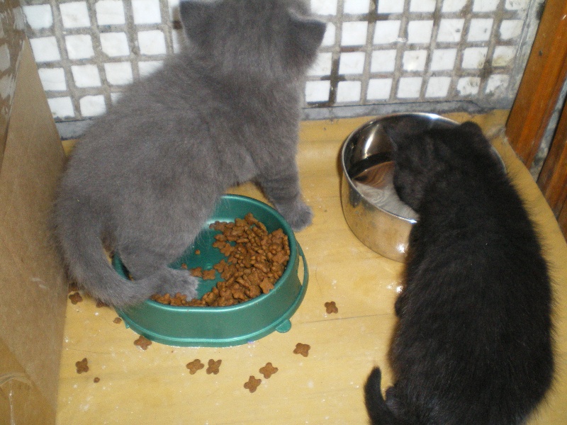 С прикормом сложнее. Да и зачем? Ведь у мамы молока вдоволь. Вот "бегаю" за ними с ложкой, уговариваю покушать. А они, поганцы, как игру все воспринимают: напрыгивают, измазюкиваются все... Будусы!