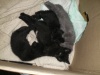 В 9.00 я проснулась, кошка мирно спала (она живет у меня в клетке на лоджии). Я спокойненько пошла заниматься стандартными утренними хлопотами, поставили варить кофе... В 10.00 вновь подошла к клетке - один котенок уже родился, второй был на пол пути. Побежала будить мужа, обзванивать всех людей для которых данная информация могла быть занятной, отменила операцию, кофе убежал... В общем мы принимали роды. Киса большая умница, все прошло т-т-т легко и вроде без осложнений. Предварительно 3 черненьких девочки и 1 серенький "пацанчик" (гордость мужа ).