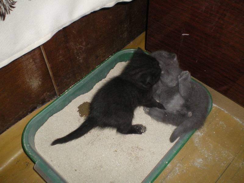 К 3м неделям поставила им лоточек и они тут же оставили в нем мааааленькие лужицы. Такие умнички, на лапках еще толком не стояли, но чего там рыли-закапывали. Смешные.