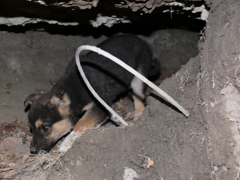 Воды им налили. Забрали самого храброго, и сейчас он едет на базу. Так и не удалось нам сегодня выманить 2 щенков, что б отдать на передержку
