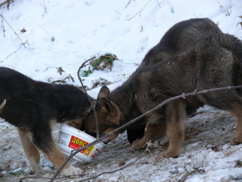 А когда муж отвлёкся на щенков,мамка не долго думая стырила у него пакет (он его на снег положил),в котором были правда только его перчатки,и уже было собралась в "горы",благо он вовремя спохватился...