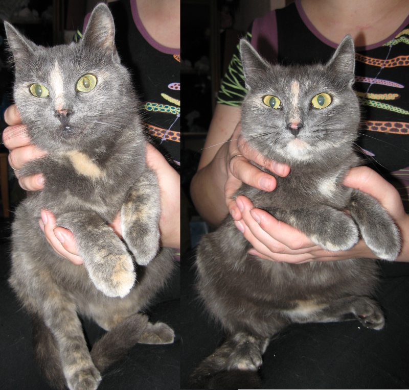 Сегодня выловили из подвала двух черепаховых кошек. Кошки симпотичные и почти близняшки :-) Я бы с радостью оставила у себя обеих кис, только они между собой не ладят.