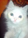Теперь насчет экстерьера - когда-то там бегали персы, пушистая, шерсть по качеству очень персидская, мордаха ближе к персо-классике, сама вся белая, а хвост как-будто от другой кошки - явно от какой-то дворовой Мурки пришили