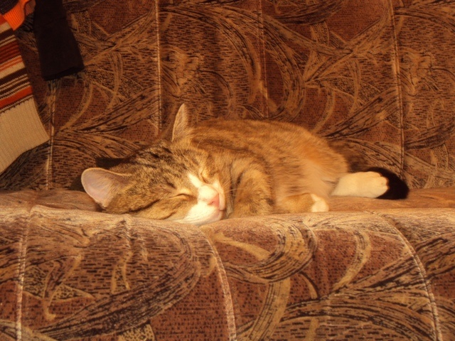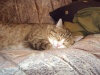 Месяц назад около квартиры подобрали миниатюрную кошечку. Окрас агути, если не ошибаюсь. Свозили в ветеринарку, врач сказала, что ребенку около года. Была залысинка на ушке, но уже прошла совсем, даже не мазали ничем. Чуть стерт верхний клык. НО... кошка после того, как покушала, сразу почапала в лоток! И когти то ли стерты оказались, то ли подстрижены. В общем, видимо малышку выгнали просто или сама удрала.