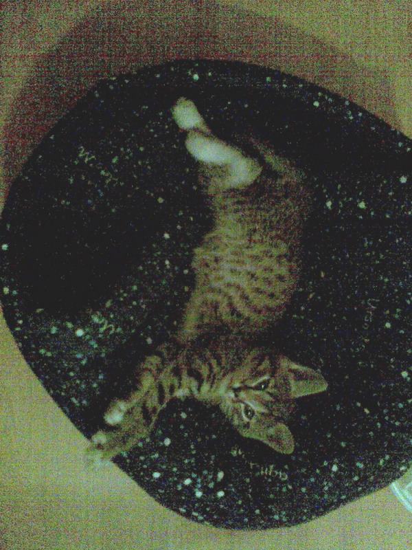 Двигательная активность всё-таки чуть меньше нормы, масса - наверное тоже, хоть возраст и неизвестен точно. Заранее предвижу, что меня побьют - тем не менее, честно сознаюсь, что сейчас хвост трясётся а за ущами трещит от вискасовского влажняка, как-то варианты с тёмой/фрутоняней не пошли.