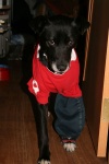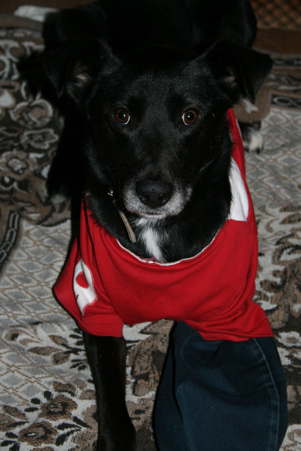Пес, старается стойко переносить все экзекуции, хотя порой это сделать не так-то просто(особенно при опрыскивании перекисью и еще когда я уколы ставить училась )