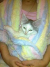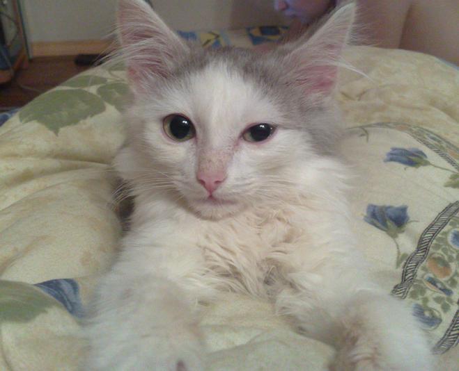 Котю назвали Ерошкой так как он всегда-всегда взъерошинный, на вид ему месяца два, а весит он ровно 1 кг. Сидеть в изоляции он категорически отказался и носится по квартире совсем не боясь аборигенов - кошку и собу))