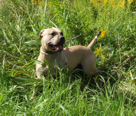О собаке: питбуль 3-4года, дружелюбен к людям, не любит других животных.