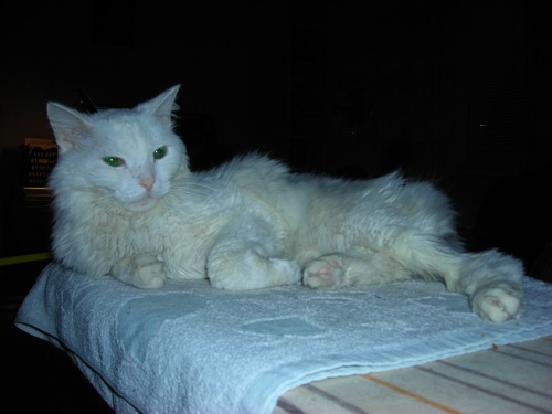 Белый кот Пашка, звезда домусов на выставках. Такой же подобранец, как и многие тут.