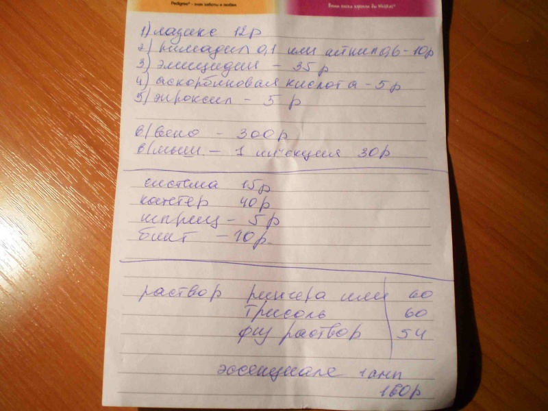 Наталья, давайте теперь выкладывайте ТТХ - какие лекарства надо и на чью фамилию в ветклинике оставлять деньги, если будут благотворители.