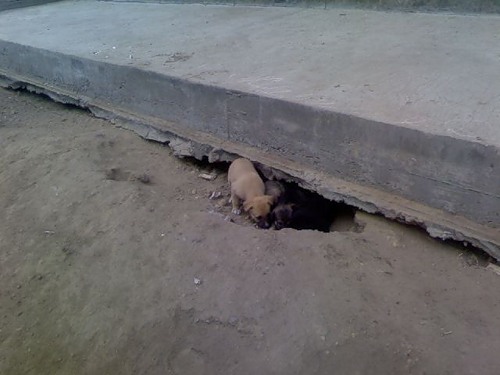 сказали о их дислокации. Нашел почти сразу. Писк и вопль услышал метров за 300. В наличии примерно 3 или 4 щенка. Живут под отмосткой строящегося