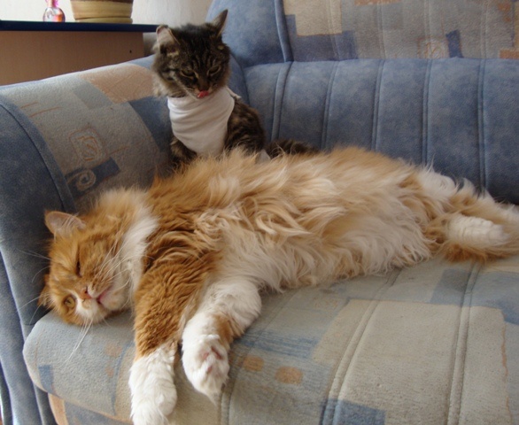 Благо, была ночь с субботы на воскресенье. А потом киса полностью отошла от наркоза- и больше не нуждалась в столь тотальном контроле. Прыгать в попонке действительно неудобно...Ответ на сообщение моя находка пользователя Luz