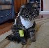 выйдя из зависона ненадолго, Мася увидела свой мячик и тут она вспомнила, что с ним надо играть...это еще та картина, шатающаяся кошка пытается попадать лапой по мячику и промахивается, пару раз правда попала, но тут не соориентировалась в какую сторону за мячиком бежать