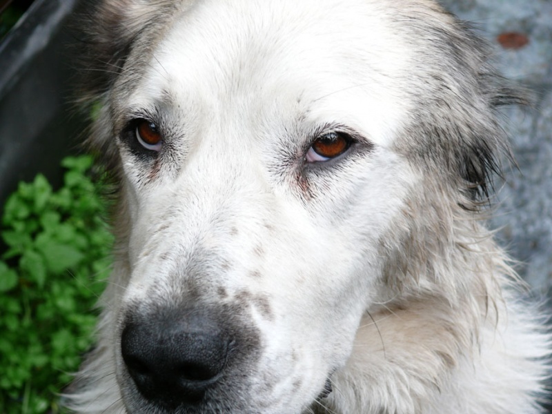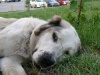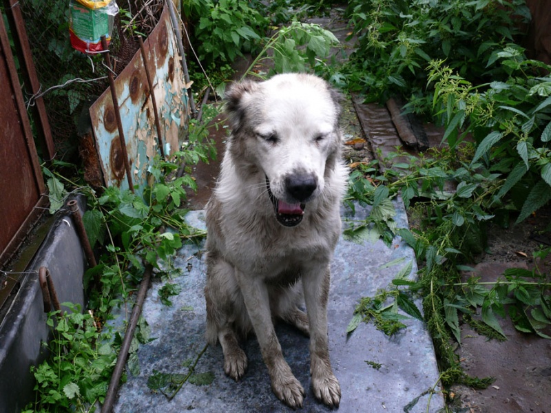 Возле моего дома уже второй раз появляется девочка-среднеазиатская овчарка. Честно говоря, не знаю, будет ли она завтра на этом же месте или нет, но хочу попробовать её пристроить хорошим людям. Девочка никак не реагирует на беседы с ней, хвостиком не машет. Когда к ней подошёл муж - начала рычать, поэтому пока я побоялась её погладить, но протянула руку к мордочке и потрогала нос. Вода у неё стоит, но она не пьёт, от сарделек отказалась. Потом мы ей совсем надоели, и она распласталась на асфальте.