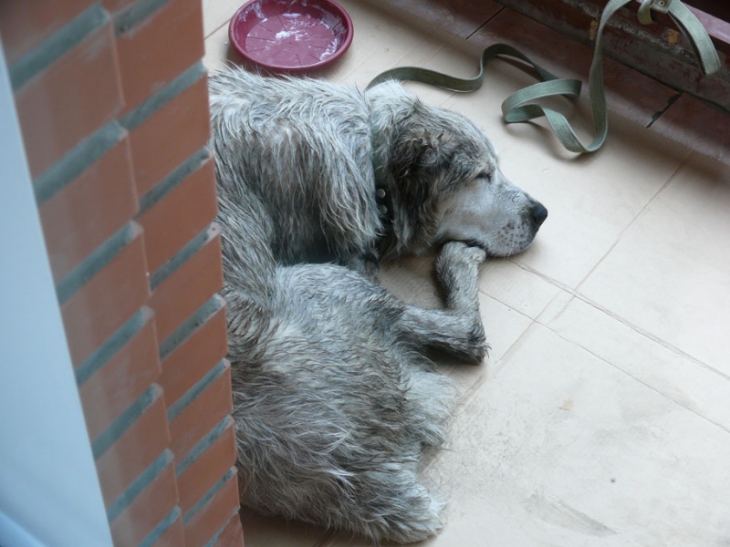 Собачка показалась мне дружелюбной (по крайней мере к женскому полу), но уставшей, а может она чем то болеет, поэтому не идёт на контакт.
